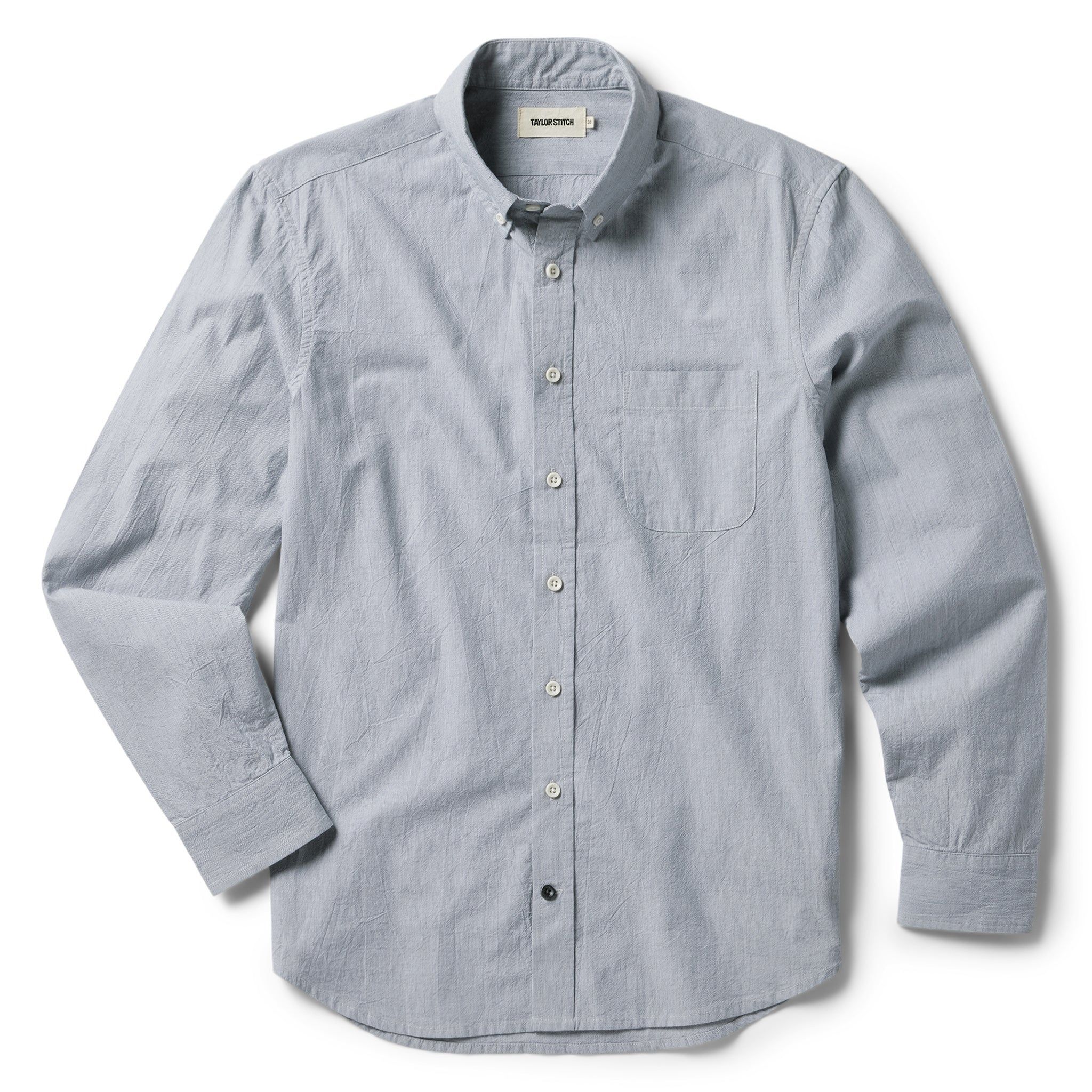 - Single rounded chest pocket.